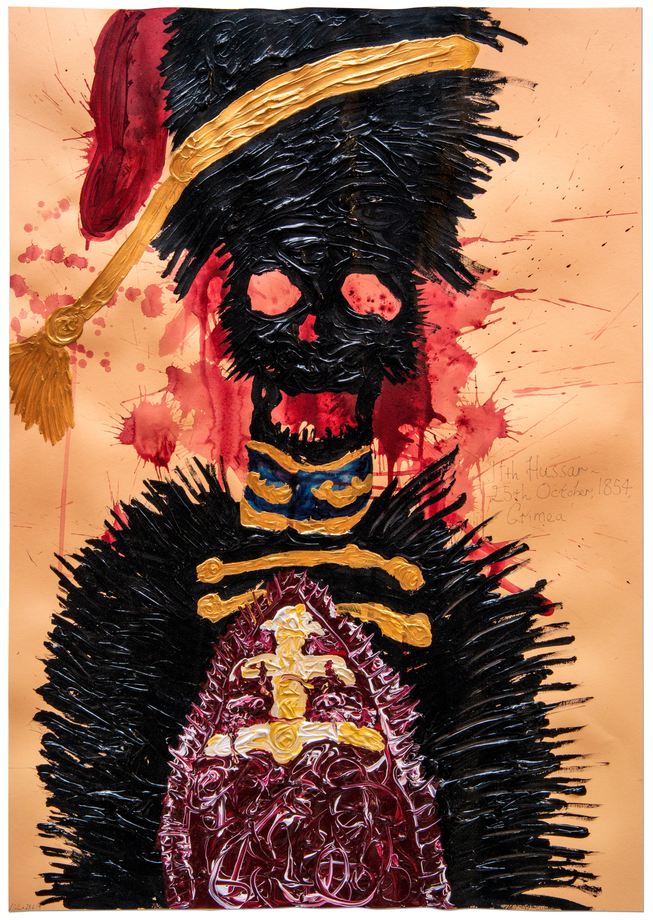 Andrew Gilbert – Here the Jackal walk on two legsAndrew Gilbert – Moooonzgroooonz Judgment – with ToasterAndrew Gilbert – Emperor Andrew i love youAndrew Gilbert – Britain – The Sick Man of EuropeAndrew Gilbert – Special FriendshipAndrew Gilbert – Aloe Flower in Kwa Zulu NatalAndrew Gilbert – Into the valley of Death – Rode the six hundredAndrew Gilbert – Sacred Soil and Bloody GroundAndrew Gilbert – Leopard man Kills Zebra WomanAndrew Gilbert – Daddy, what did YOU do in the Great WarWasserfarbe, Acryl und Stift auf Papier / Watercolor, acrylic and pen on paper · 62 x 48 cm · 2014